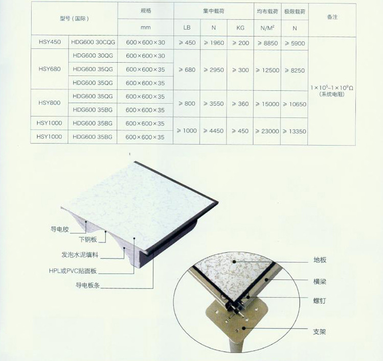 防靜電全鋼架空活動(dòng)地板:分有邊和無邊兩種,尺寸為600*600*35是專為方便計(jì)算機(jī)機(jī)房綜合布線而設(shè)計(jì)的活動(dòng)地板。地板外殼均采用優(yōu)質(zhì)冷軋鋼板,上方板為上海寶鋼優(yōu)質(zhì)冷軋鋼板,下板采用先進(jìn)點(diǎn)焊工藝結(jié)構(gòu),地板中間填充華集研制的特殊配方的輕質(zhì)水泥,使成品具有高強(qiáng)度,采用鋼質(zhì)支架,強(qiáng)度及穩(wěn)定性好,有利于地板面平整性的提高。